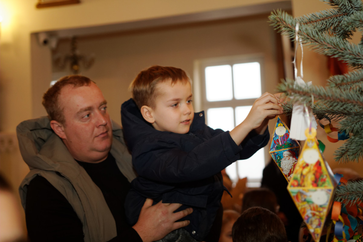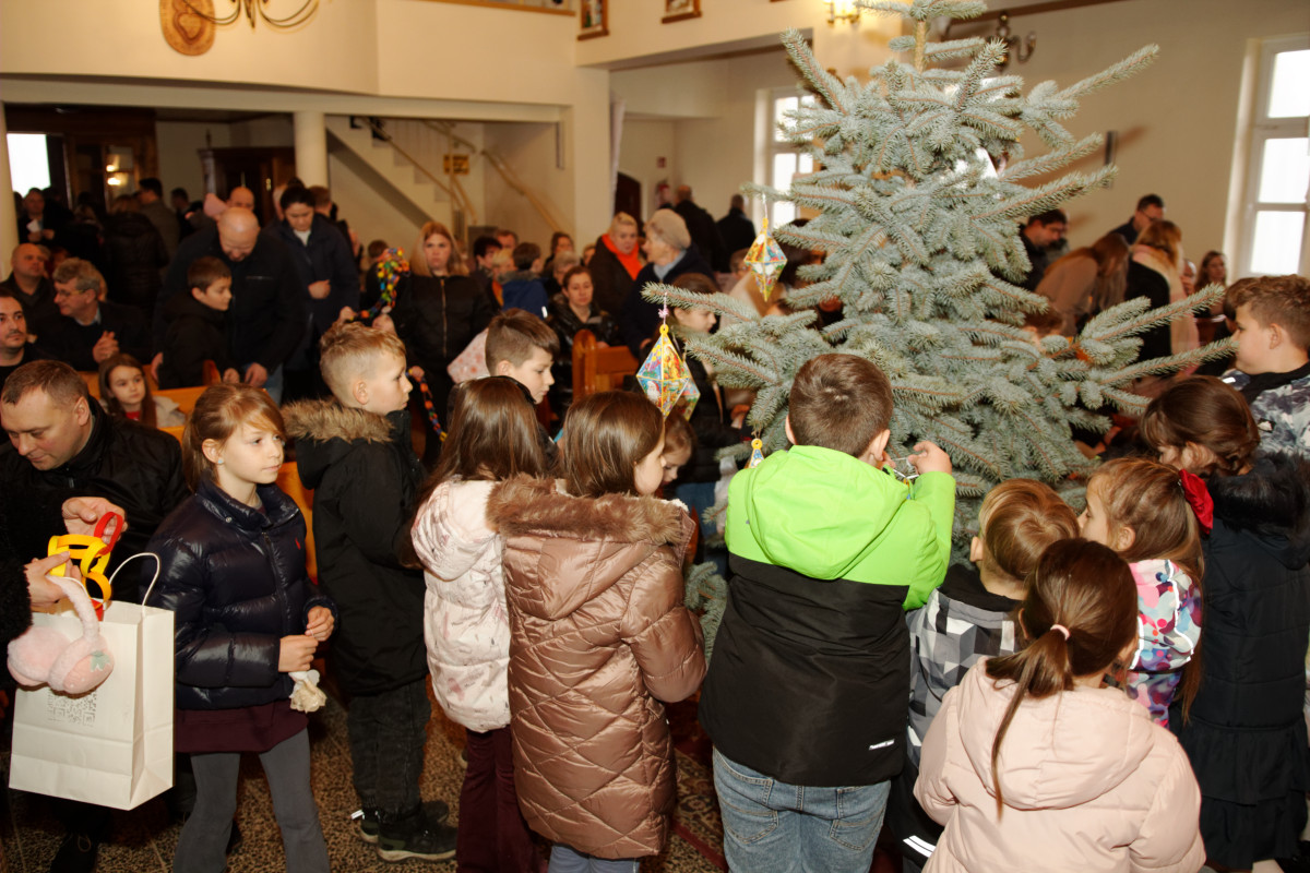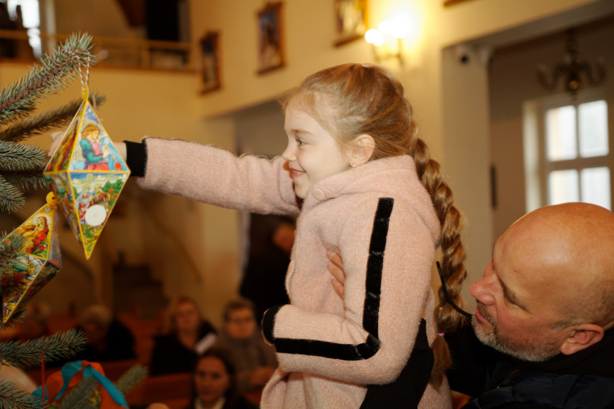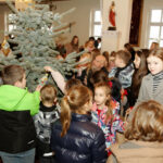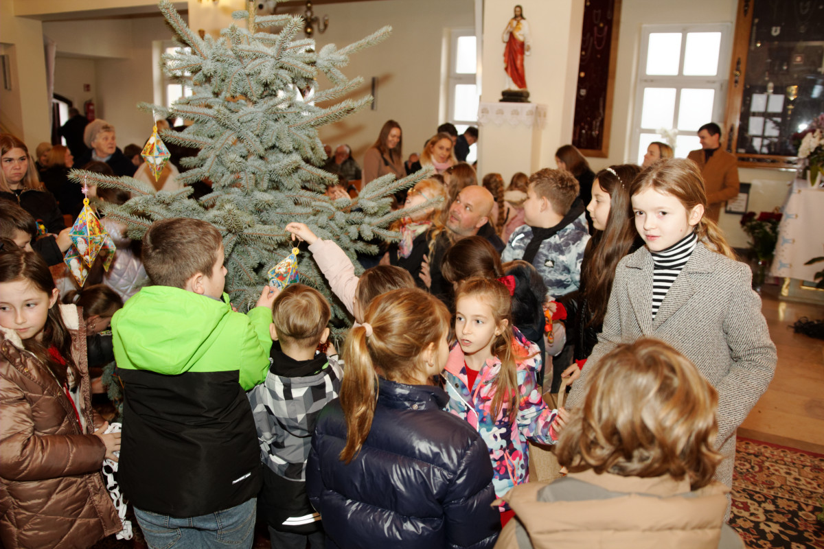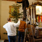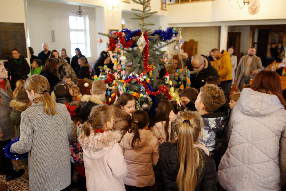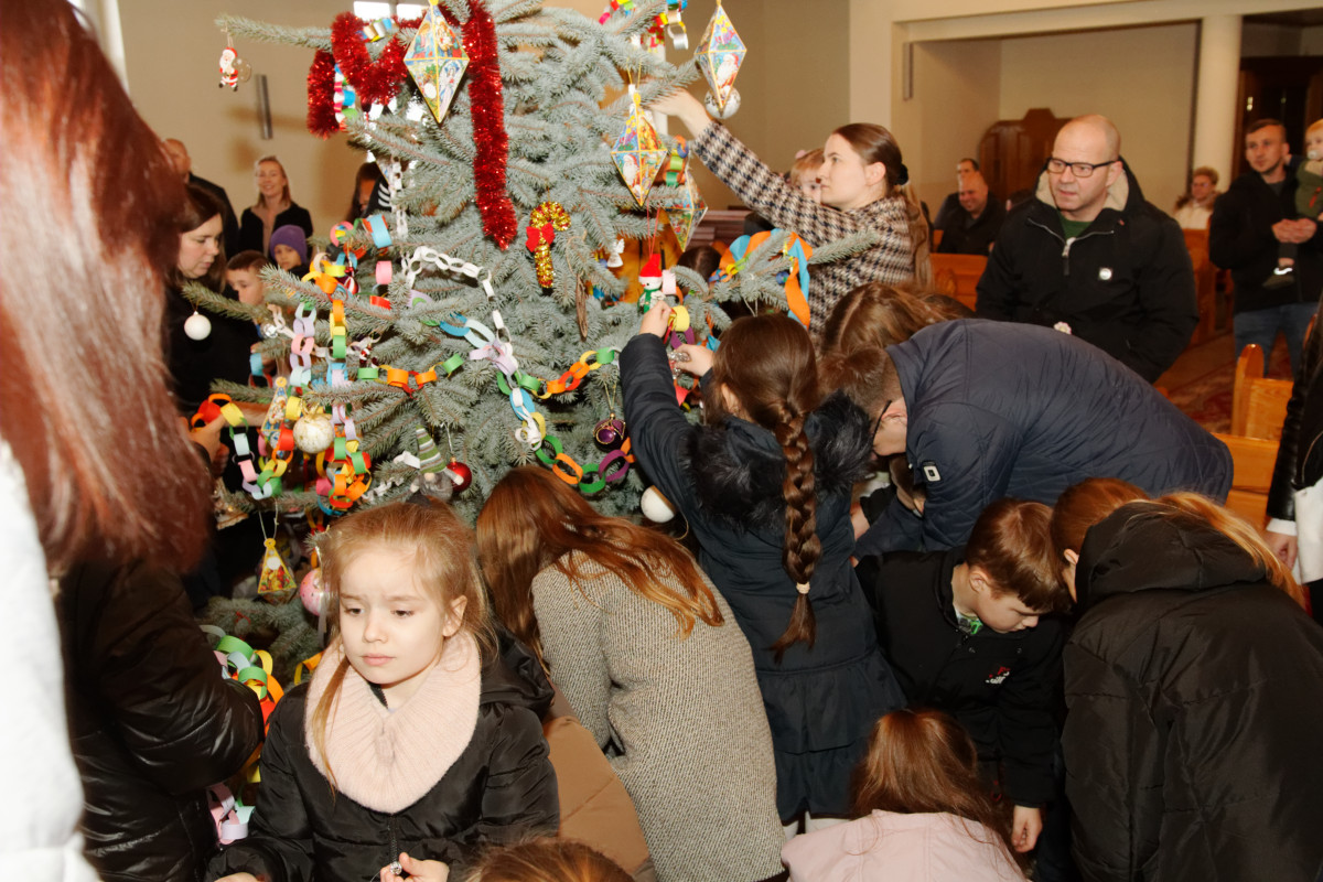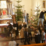 Po Mszy Świętej o godz. 11 parafianie wspólnie stroili bożonarodzeniowe choinki. Dzieci, młodzież i dorośli z radością włączali się w dekorowanie, a najmłodsi chętnie zawieszali ozdoby chcąc wyeksponować swoją ozdobę jak najwyżej. Dorośli pomagali dzieciom i rozwieszali świąteczne oświetlenie.