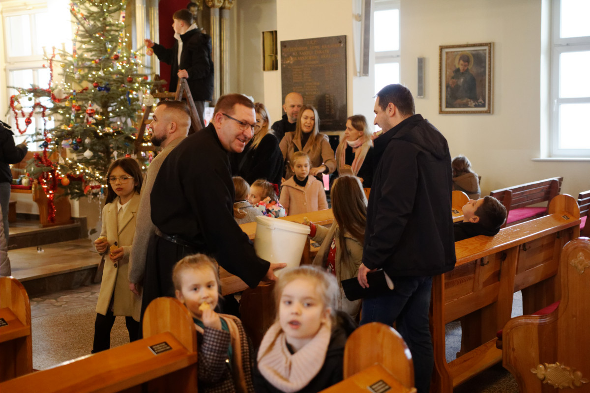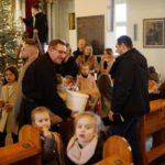 Ojciec Grzegorz częstował dzieci słodkościami, dziękując za zaangażowanie i piękną, rodzinną atmosferę. Strojenie trwało krótko, a przyniosło wiele radości.